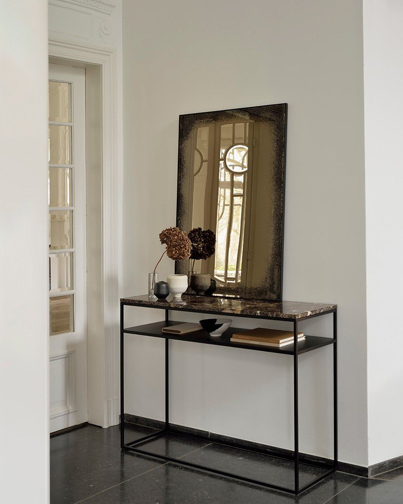 Una mezcla uniforme de elementos contemporáneos y glamurosos, esta consola de líneas limpias aporta un toque de estilo chic a cualquier habitación. Con su moderna estructura metálica abierta y su mármol, que sirve como alusión a los diseños clásicos, la consola Stone es una pieza central en todo el sentido de la palabra.