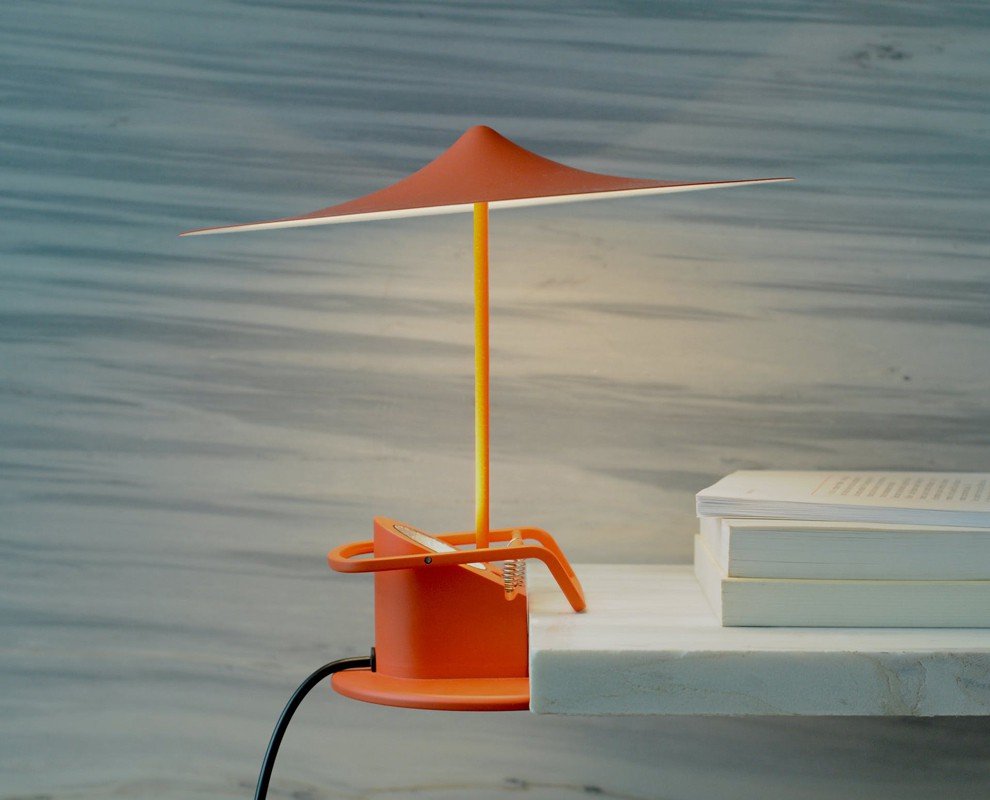 Con w153 île, Inga Sempé vuelve a visitar las sencillas pero inteligentes lámparas de pinza de su infancia, mejorando su estado al tiempo que agrega estabilidad, personalidad y multifuncionalidad.