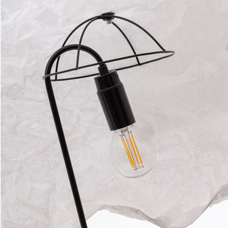 Colour : Grey base – White lampshade – Black rods – Black cable